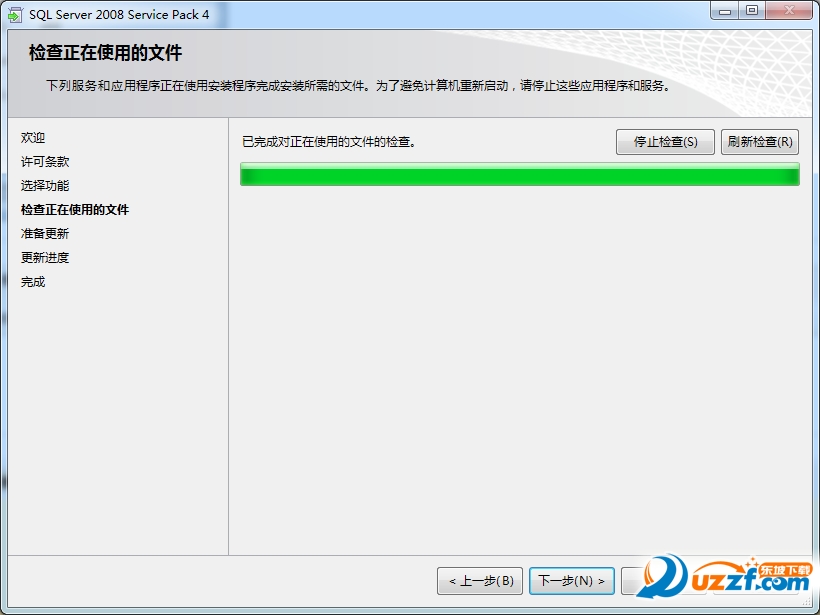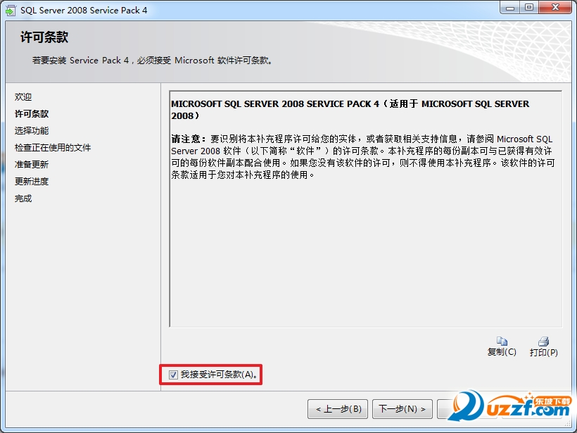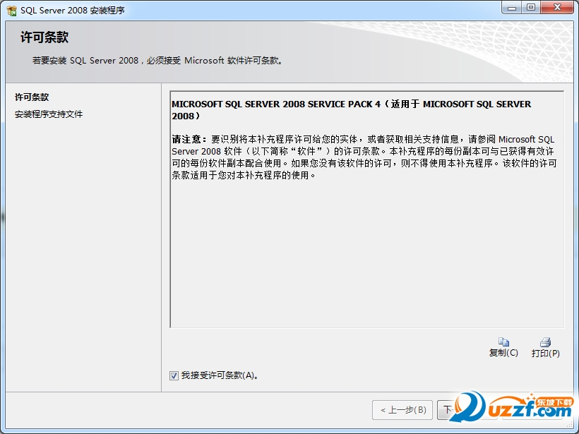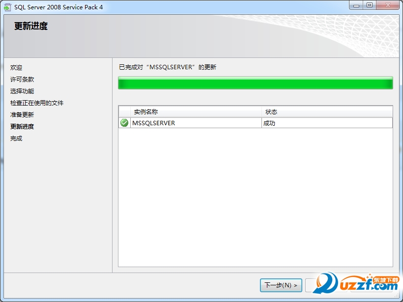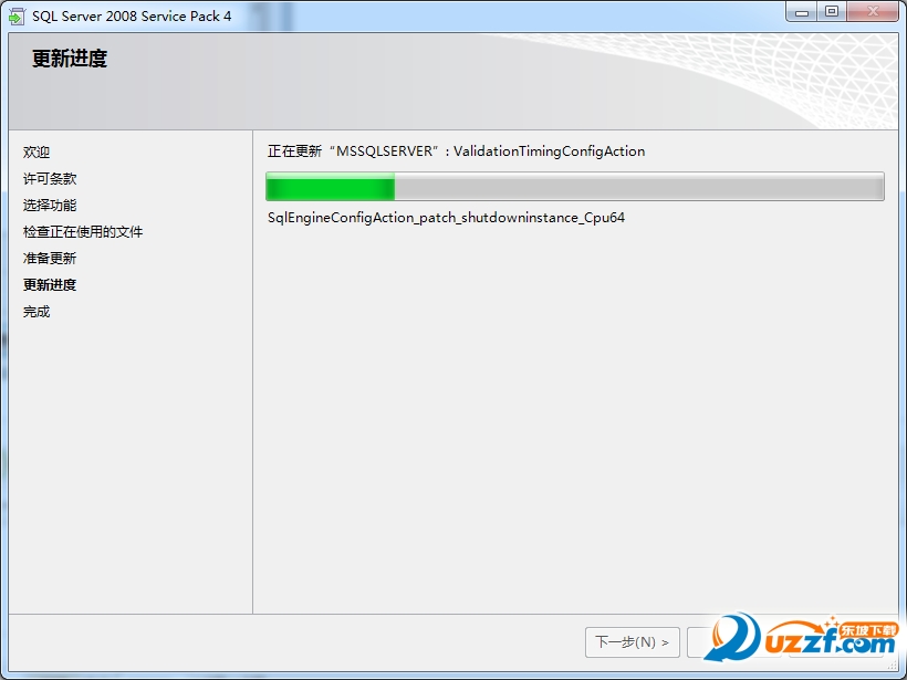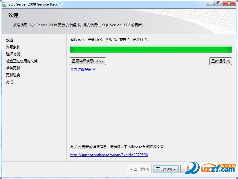 小编电脑重启后,重新运行安装包程序,前面的支持文件就不需要再次安装了,成功打开到SQL Server 2008 sp4补丁的安装界面(其实这个补丁的安装基本跟SQL Server 2008的安装是一样的)
