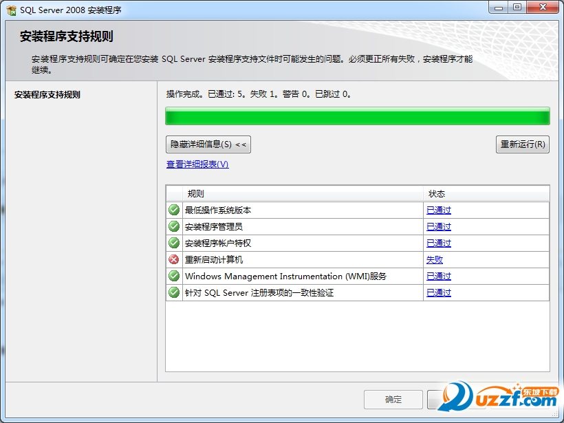 支持文件安装完毕后,会检验安装环境,如图:这里如果有错误,可以查看相关提示,里面会有解决办法,小编之前装过某版本,所以这里提示需要重启才能继续进行。