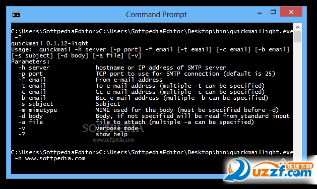 此外,的主体代表消息的主体,M的文件类型是用于身体的MIME(必须指定在D),D体体(自动从标准输入读取一个文件,如果没有指定)的文件atach(多个条目被接受),而V是详细模式。