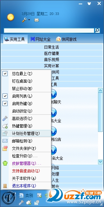 万能查询工具的页面类似于QQ,可是它却是一个实实在在的程序管理软件,桌面上所有的程序、文件、文件夹甚至是网页都可以拖拽到它的控制面板内,用户可以分门别类进行管理,更有效率的启动程序。它拥有与QQ一样精致的界面,并且可以像QQ一样自动隐藏在桌面顶部。