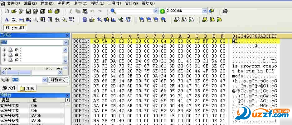 1.运行010Editor,“文件”-“打开”-选择Plugin.dll打开,出现以下界面