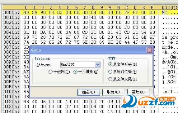 2.先修改端口地址:按菜单栏的“搜索”-“转到”-输入16进制值0xA4366(端口地址)-确定。