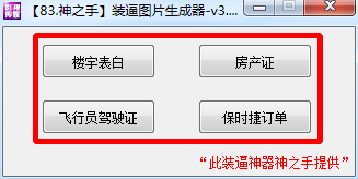 神之手装逼图片生成器是一款简单易用的图片造假软件,可以生成楼宇表白图片、房产证图片等,快把生成的图片发到朋友圈吧。