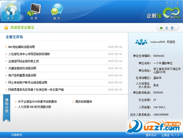 企服宝网站主要有新闻资讯、通知公告、产品下载、资料下载、联系我们五部分组成。新闻资讯和通知公告交由专人编辑更新,传递最新的行业新闻及社保通知公告;产品下载中提供了企服宝软件的安装包免费下载;资料下载则包含了用户最关心的各种操作手册、辅助工具,同时教学视频可以在线观看