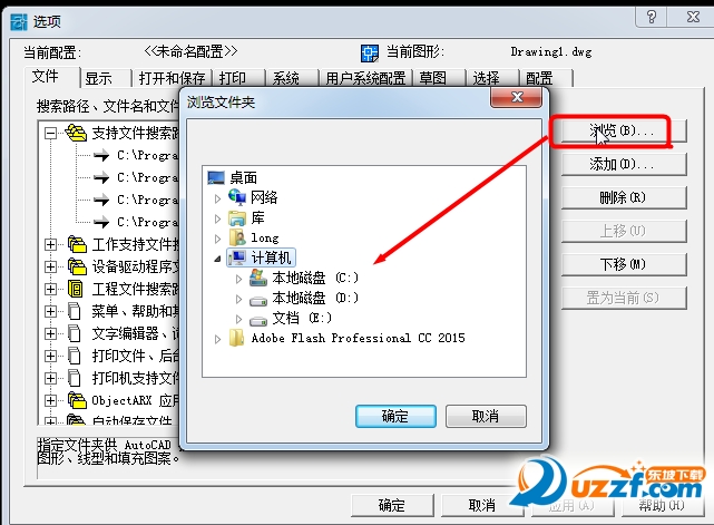 3、然后“浏览”,找到你的字体文件所在目录即可。或者也可以直接把字体文件拷贝到cad安装目录下的fonts目录下。