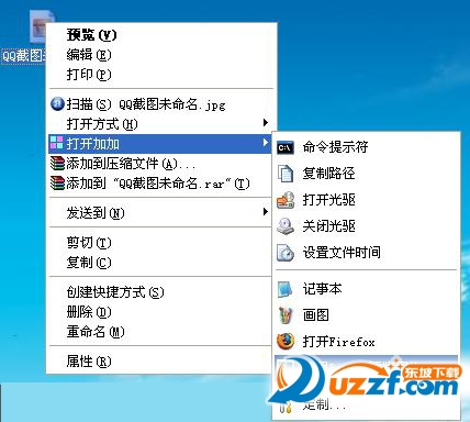 打开方式添加程序(open++)默认是添加了“命令提示符”、“复制路径”、“打开光驱”、“关闭光驱”和“设置文件时间”几个快捷操作,如果需要添加的话可以自己定制。