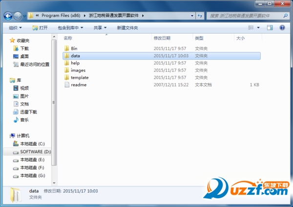 这时会看到安装目录里有一个名为“data”的文件,这就是开票软件的数据库了