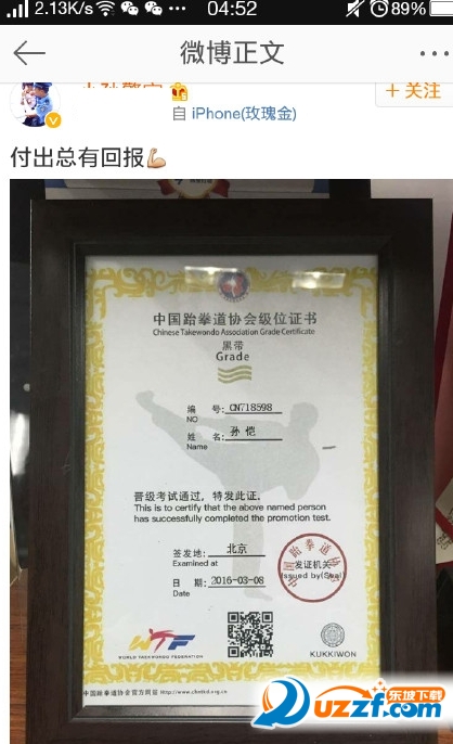 很多人练跆拳道就想打到黑带,它毕竟是最高的分级,怎样让别人知道你的厉害呢?获得跆拳道黑带证书就是不错的选择,小编这里带来一款跆拳道黑带证书装逼生成器,能一键生成跆拳道黑带证书图片,装逼神器有木有?