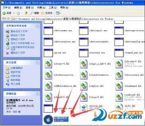 注:降级工具内的“idevicerestore for Windows”文件夹可以在任何目录运行,桌面什么的都可以。