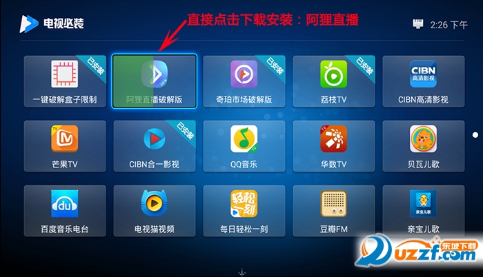 安装了一键"破解"盒子限制,我们再来安装看电视直播的软件吧,以阿狸直播为例,直接点击进行安装,下面是安装过程。如下图: