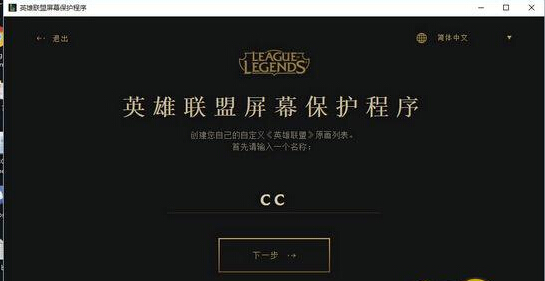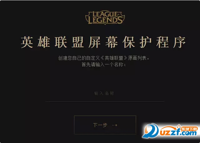 点击设置的话,就会启动Riot官方的屏幕保护程序(点开后可能程序会处于黑屏状态,不过不用担心,这只是加载有点慢而已,大概稍微等待20秒左右即可,然后进行应用程序下载),等程序加载完之后,先随便输入一个名称,点击下一步。就可以挑选你自己喜欢的壁纸了: