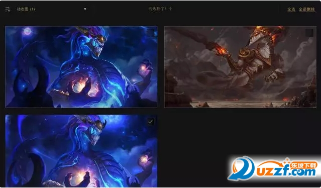 返回之后,龙王这个英雄右上角有一个标记:1,表明我在龙王这个英雄的原画里选择了其中一张,继续选择其他的:
