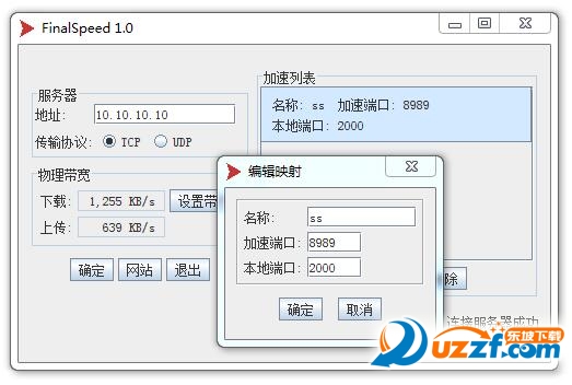 1.运行FinalSpeed客户端,填写服务器地址 10.10.10.10