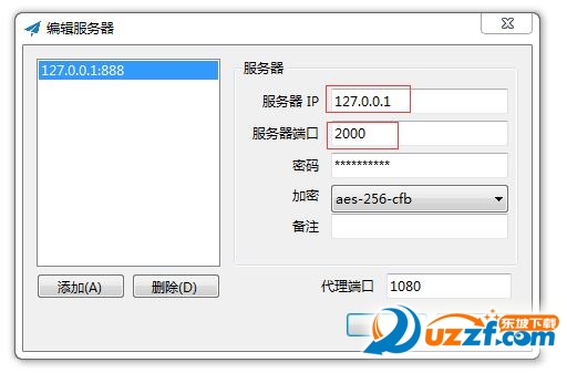 3.打开SS客户端,添加服务器,服务器IP为127.0.0.1,服务器端口为加速端口对应的本地端口,这里是2000,然后设置你的ss密码,加密方式.