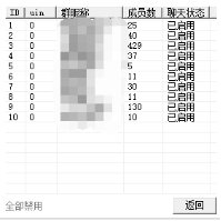 点击后显示机器人加入的群列表。右键点击群,可以禁用/启用自动聊天,以及查看群成员列表(成员列表中,右键可以踢人,机器人必须是群主)。