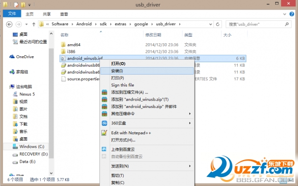 找到/usb_driver/android_winusb.inf这个文件,右击安装即可,如图