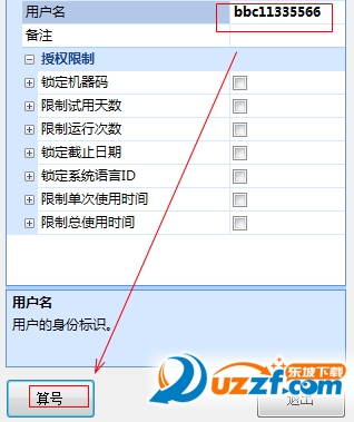 3、输入用户名,也即是注册名,备注可写可不写,点击算号