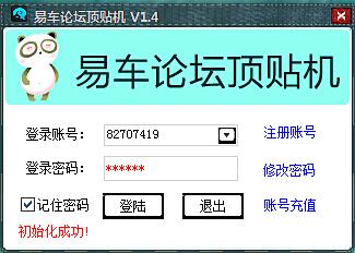 易车论坛发帖机升级到V1.4版本,新版本修复了登陆失败的问题,增加了远程打码功能,支持批量导入发帖内容,实现24小时自动发帖,软件可以配合易车论坛顶贴机使用,一个自动发帖,一个自动顶贴,打造热门帖子!