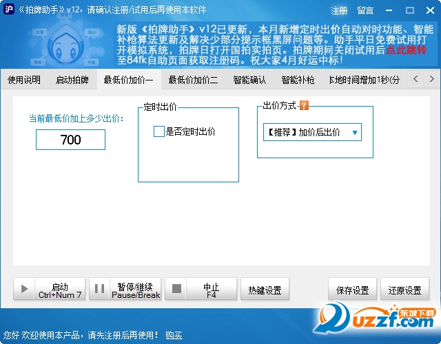 帮助来不及看时间看价格、对电脑不太熟练的用户快速出价。