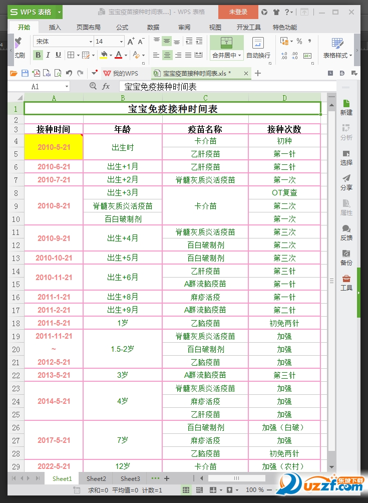宝宝疫苗接种时间表最新版版(1~12岁)预览