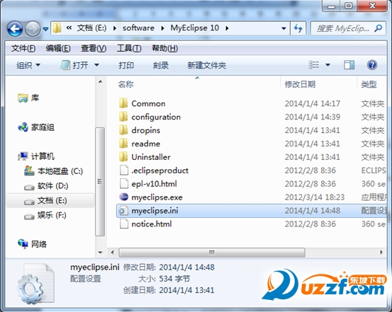 5:找到MyEclipse 10的目录下找到myeclipse.ini文件,文件就图四的里面的位置。用记事本打开在最后一行加多一条语句
