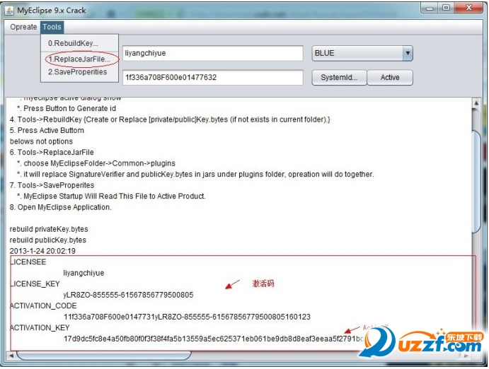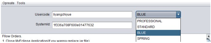 激活码,与Activete一会需要使用(记住,一会来这里Copy)。覆盖默认myeclipse激活Jar文件