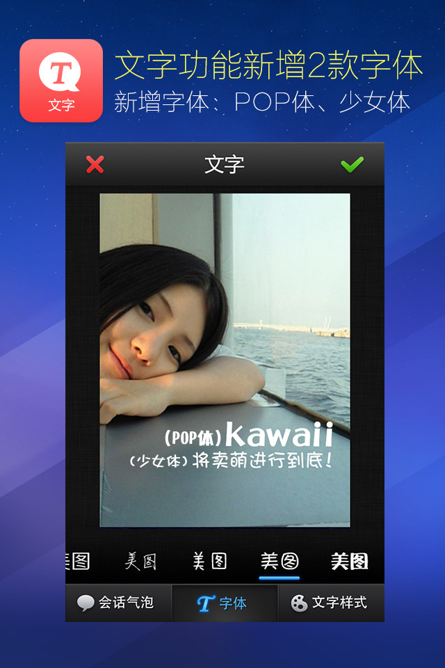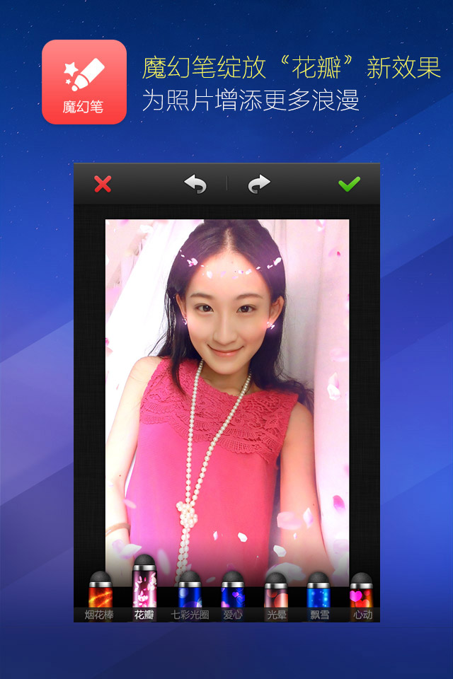 4.魔幻笔新增“花瓣”样式;文字功能增加POP体、少女体。