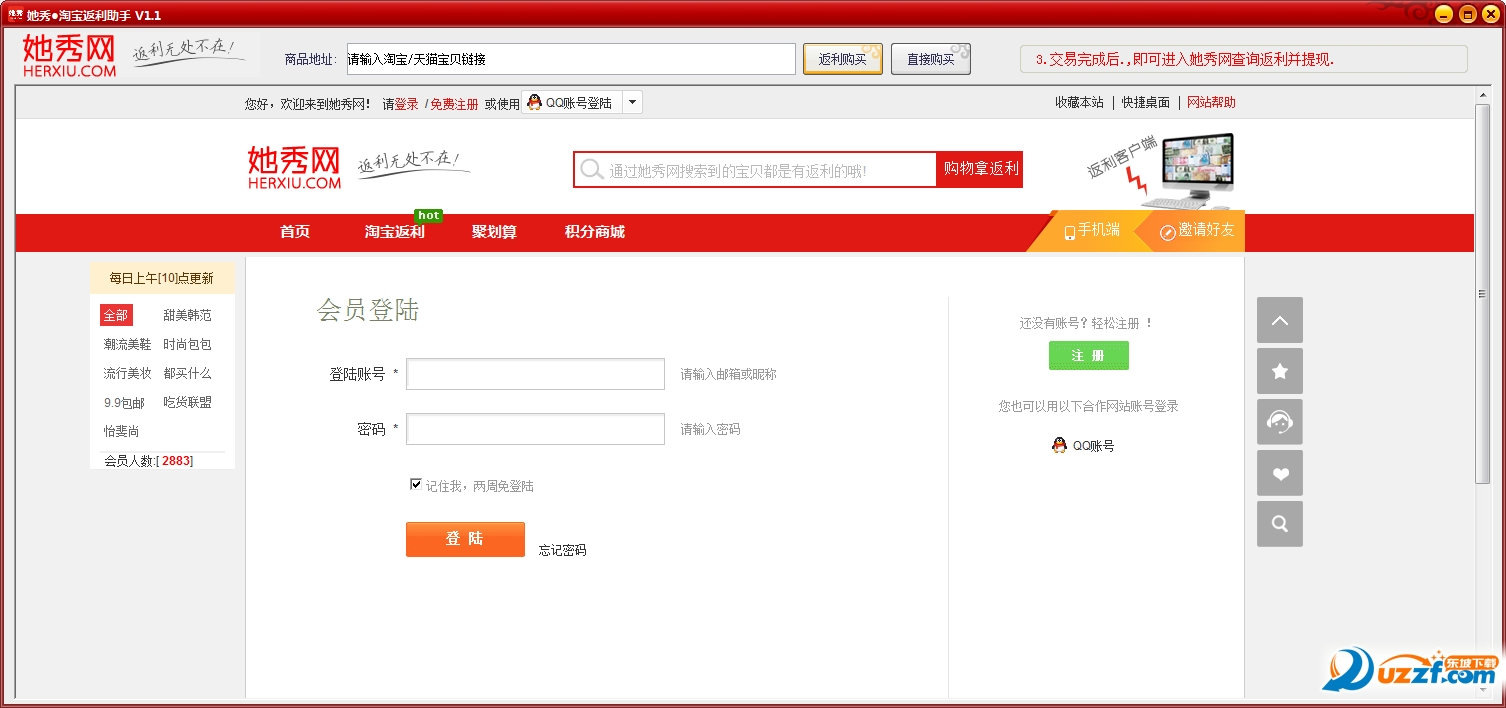 通过此链接购买即可得到返利, 返利金可以随时到她秀网提取。