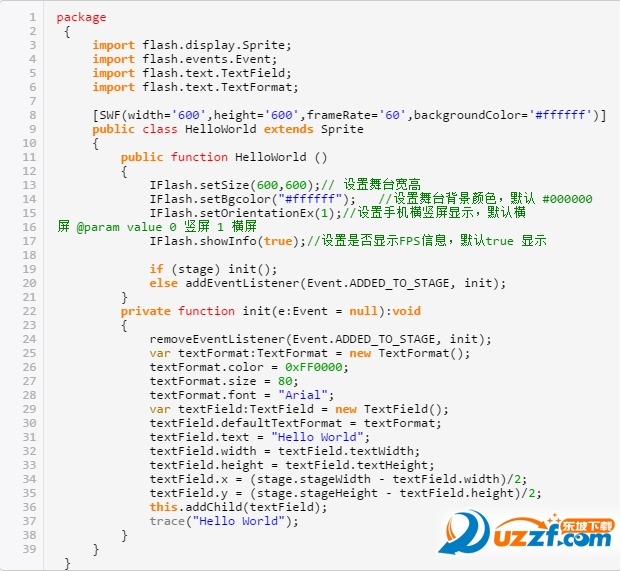新建ActionScript项目HelloWorld,并将Laya.swc加入库里。