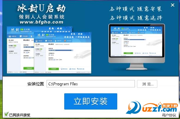第一步:从冰封官网下下载冰封U盘启动7.0正式版 然后安装
