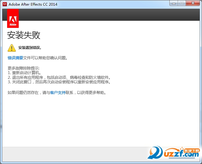 小编在安装Adobe After Effects CC 2014的时候也遇到了安装失败的问题,如图: