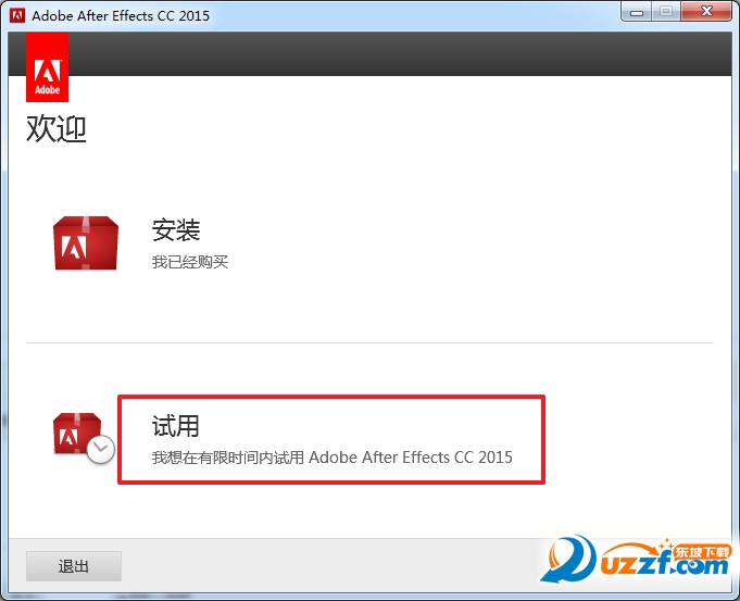 成功载入 Adobe After Effects CC 2015 的安装界面:安装选择试用安装