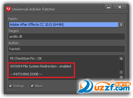 运行破解补丁,默认第一个就是AE CC 2015,不用大家手动去找下拉列表了,然后点“Patch”按钮