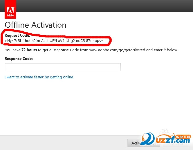 将上面那串代码复制到 Request 栏中,然后点“Generate”即可生成激活码