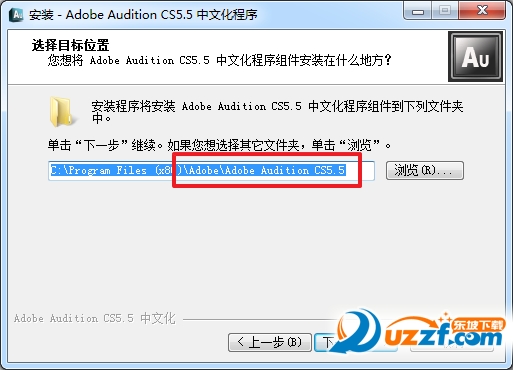 选择 Adobe Audition CS5.5 的安装目录,默认目录: C:\Program Files (x86)\Adobe\Adobe Audition CS5.5 (如果你改过安装目录,可能就需要手动选择了)