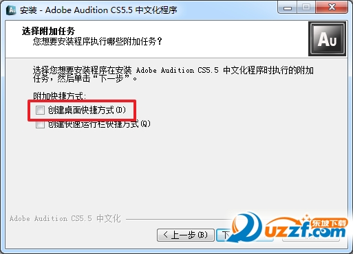 因为AU CS5.5不会在桌面创建快捷方式,这里可以勾选下