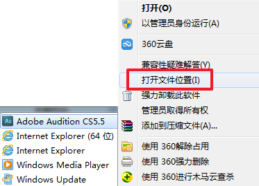 在 开始--所有程序 里找到 AU CS5.5,然后右键点 “打开文件位置”