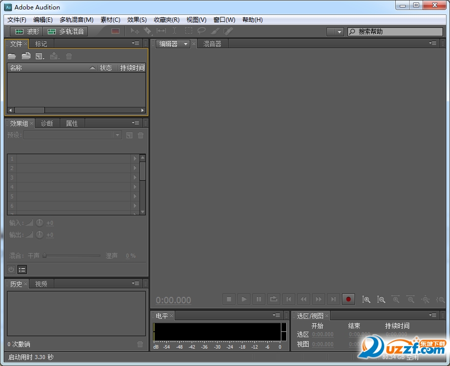 替换成功后,即可正常启动 Audition CS5.5 ,简体中文界面,完美汉化,如图: