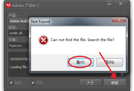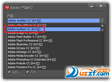 运行破解补丁,从下拉列表中找到 Adobe Audition CC(64位)