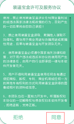 2、许可及服务协议,不能用于诈骗和非法行为,点击同意