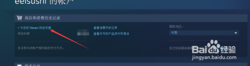 在商店和消费明细中可以看到自己的账户余额为0,点击“为您的steam钱包充值”