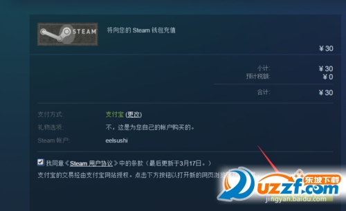 假如很长时间未到账的话,可以再随意一个面额点击充值,但不同的是支付宝页面不充值直接关闭,因为steam服务区只能处理一个订单,所以重新的一个订单会把上一个订单覆盖,上一次充值直接到账,笔者亲测可行,假如这个方法也不行的话,就只能给客服发邮件进行申诉了。