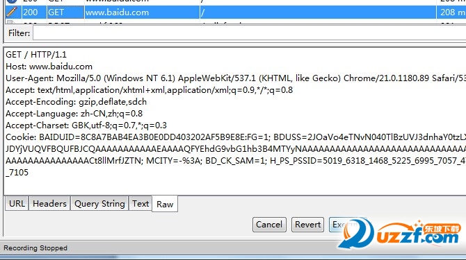然后charles会自动配置IE浏览器和工具的代理设置,所以说打开工具直接就已经是抓包状态了。 这里打开百度抓包下,工具界面和相关基础功能如下图所示: