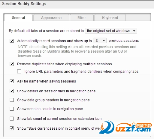 Session Buddy是一款可以帮助用户查看、新增、编辑当前网站Session状态的Chrome插件,用户可以利用该插件保存网站当前的状态以便在关闭Chrome或关闭计算机后恢复。