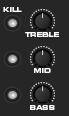 三段EQ控制,从上至下依次为高音、中音、低音,旁边的KILL灯可直接过滤掉此频段的信号