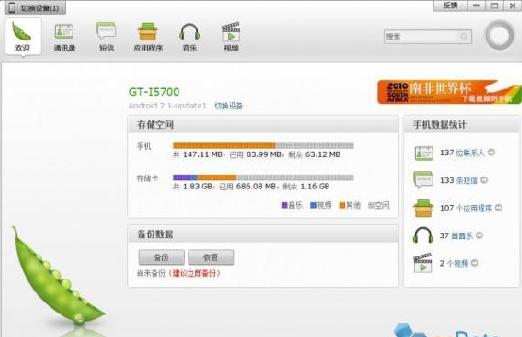 豌豆荚手机精灵是一款贴心的手机助手,目前支持android手机系统,通过它您在电脑上就能方便地管理手机中的通讯录、短信、应用程序和音乐,并对重要资料进行备份和恢复。