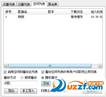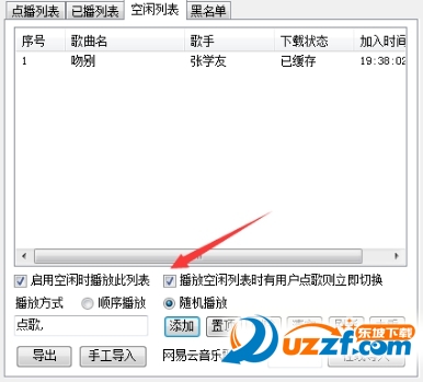 (d)用户还可以设置:播放空闲列表时有用户点歌是否立即切换。