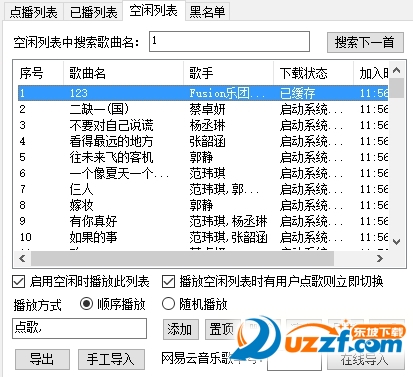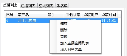(d)点播列表,已播列表,空闲列表,黑名单,都可以选中歌曲点击右键,进行单独处理。