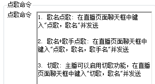 用户可以复制点歌说明并置于直播间公共中以告知用户点歌语法。