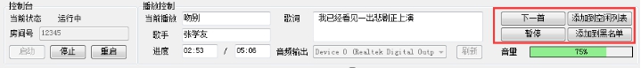 (b)主播可以对当前播放歌曲进行“下一首”、”暂停“、”添加空闲列表“、”添加到黑名单“